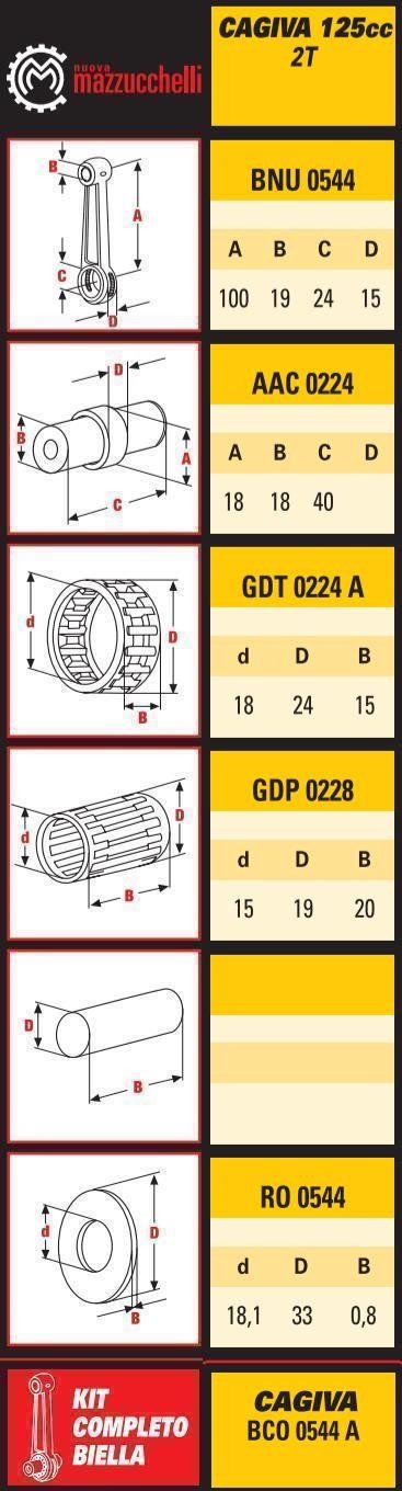 Kit Bielle Mazzuchelli - Hiro 125 cc Kit bielle complet : bielle, axe, cage à aiguille Entraxe = 100 mm... En savoir plus