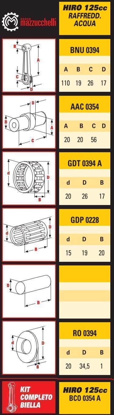 Kit Bielle Mazzuchelli - Hiro 125 cc H2O Kit bielle complet : bielle, axe, cage à aiguille Entraxe = 110... En savoir plus