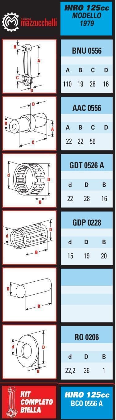 Kit Bielle Mazzuchelli - Hiro 125 cc Modèle 1979 Kit bielle complet : bielle, axe, cage à aiguille Entraxe =... En savoir plus